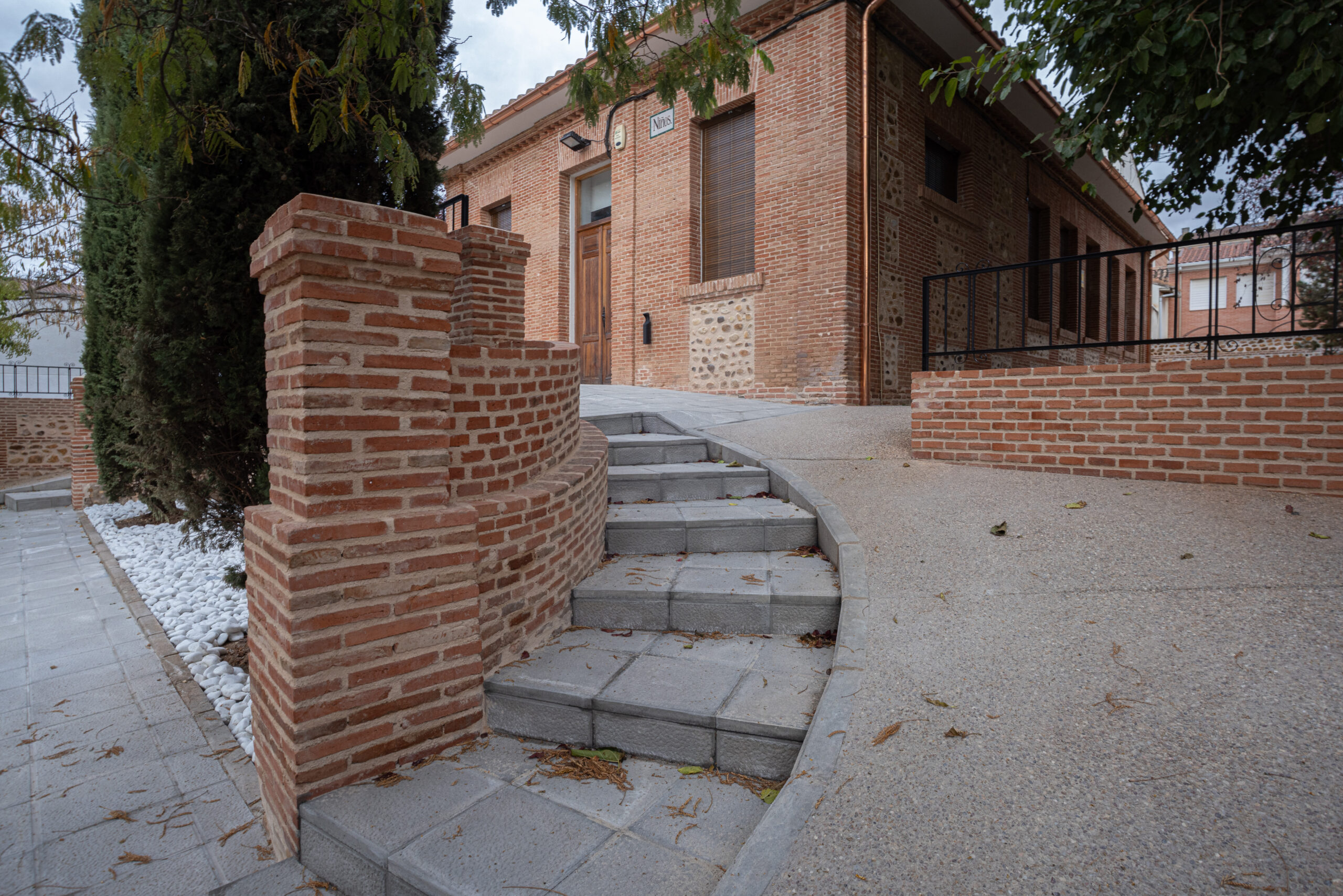Restauración de fachadas y cerramiento exterior de ladrillo, sustitución de cubierta de teja y rehabilitación parcial interior del centro de la mujer de Cabanillas del Campo (Guadalajara)